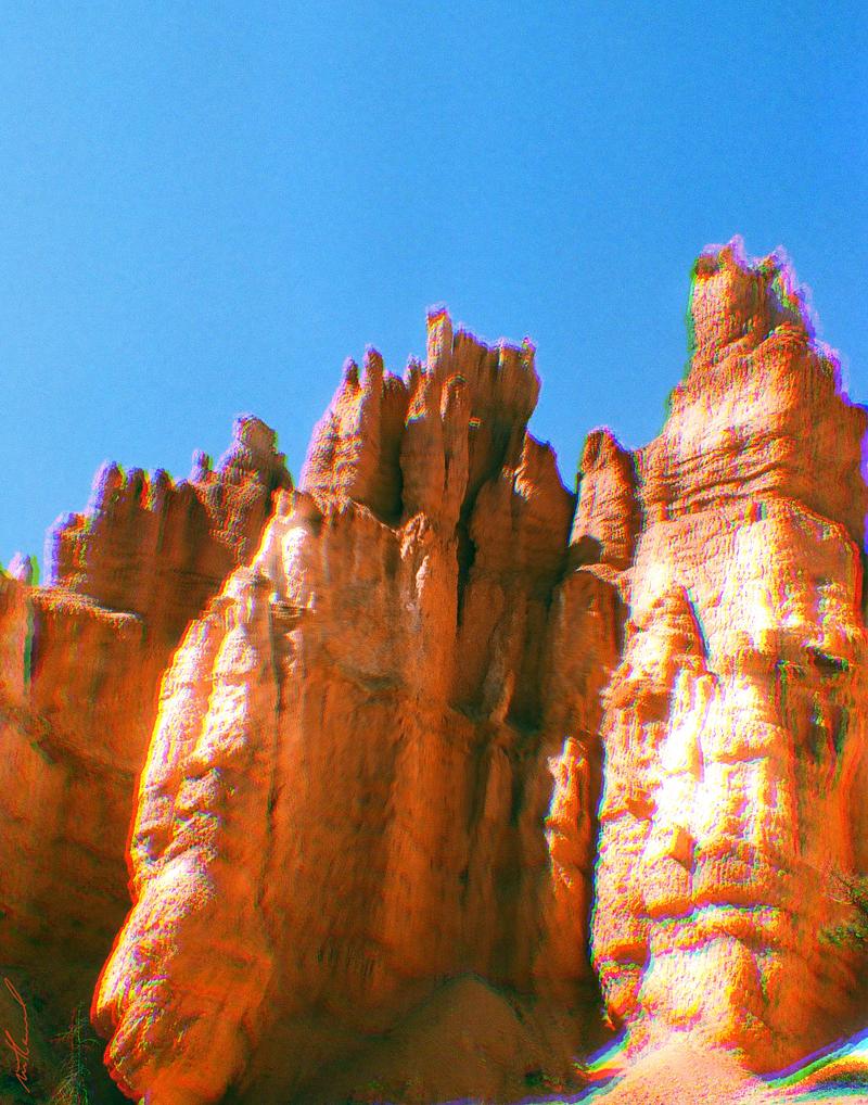 Take in the awe-inspiring beauty of Bryce Canyon National Park, with its towering hoodoos rising up toward the sky. The intricate formations of the rocks are simply breathtaking, with shades of red, orange, and brown creating a striking contrast against the clear blue sky. The texture of the rocks is equally stunning, with deep grooves and ridges carved into the stone by the wind and rain. The vastness of the canyon and the sheer magnitude of the hoodoos give a sense of scale, reminding us of the immensity of nature and the power it holds. The photo is a testament to the raw beauty of the natural world and a reminder of the importance of preserving these precious places for generations to come. As you gaze upon the image, you're filled with a sense of wonder and awe and are reminded of the boundless possibilities of the world around us.