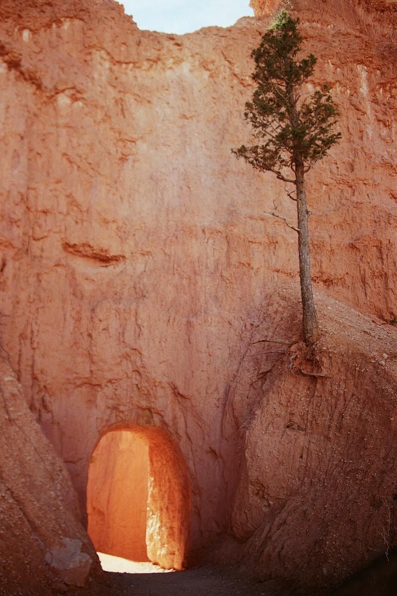 You stand at the entrance of a short tunnel, carved through the towering red rock formations in Bryce Canyon, Utah. The tunnel's rough-hewn walls are illuminated only by the faint sunlight filtering through the narrow opening at the far end, casting deep shadows in the crevices and corners of the passage. As you step inside, the air grows cooler and the sounds of the outside world fade away, replaced by the echoes of your footsteps on the hard stone floor. Despite its brevity, the tunnel exudes a sense of mystery and intrigue, urging you to venture deeper into the heart of the canyon to discover what other secrets it holds.